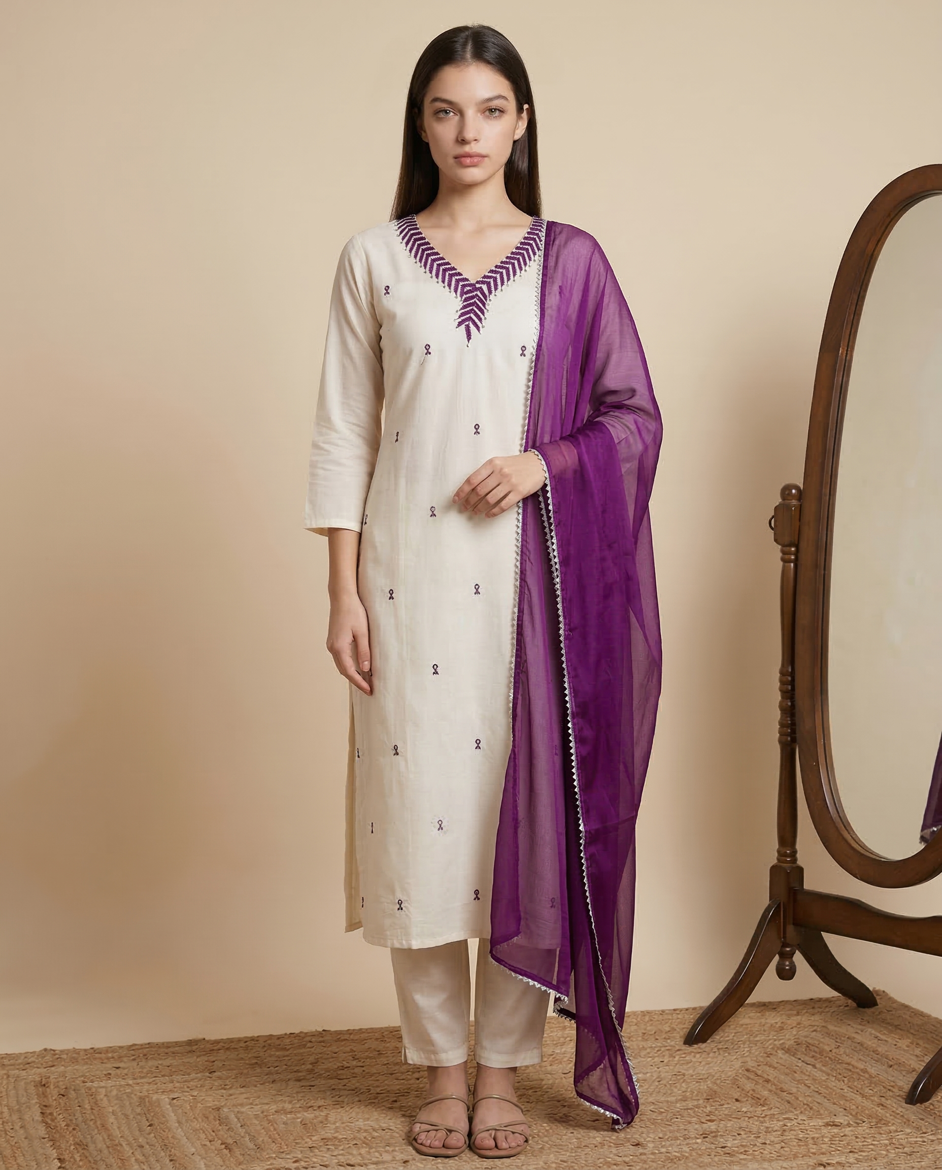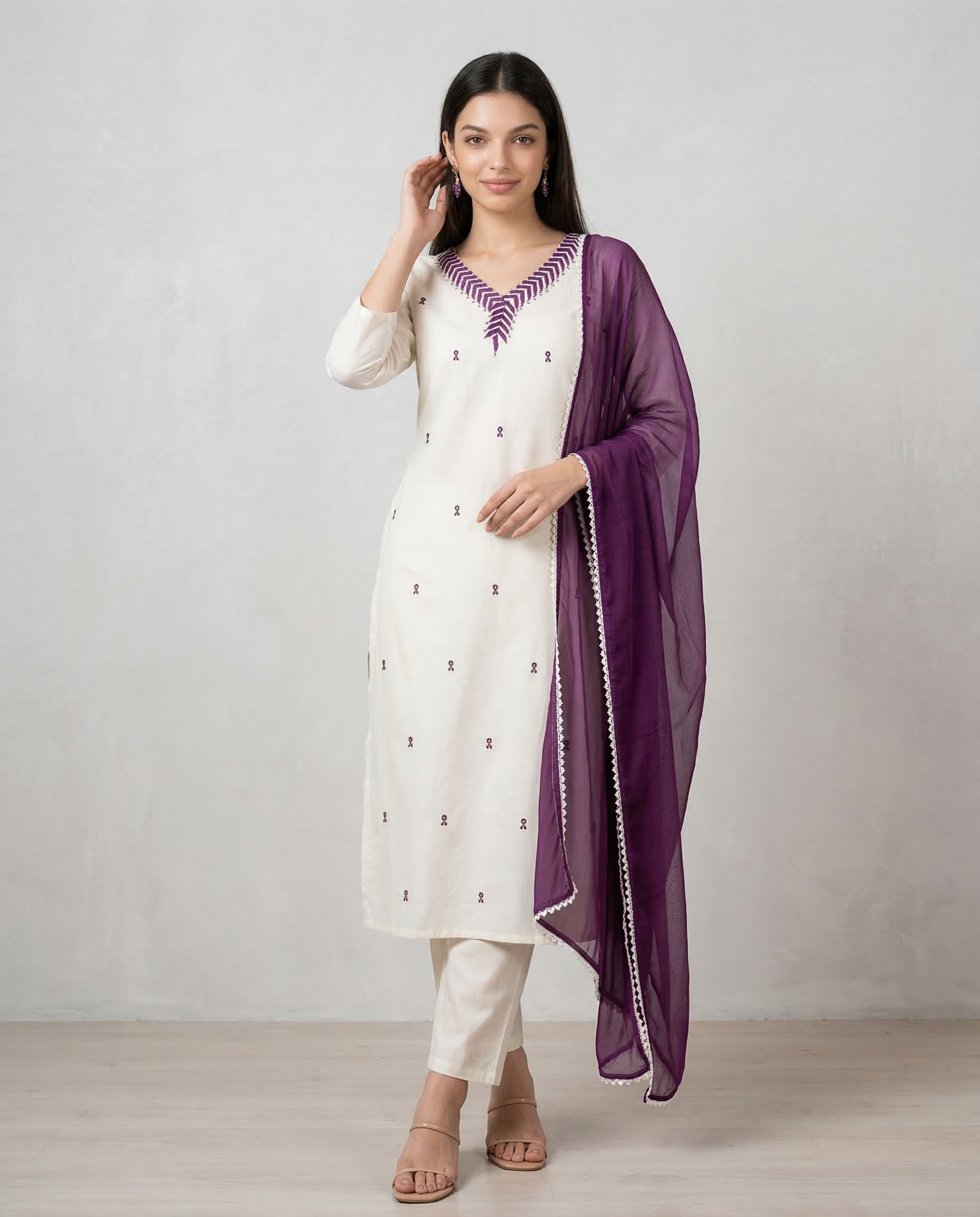 This outfit blends timeless ethnic charm with modern comfort, making it a versatile addition to any wardrobe.
